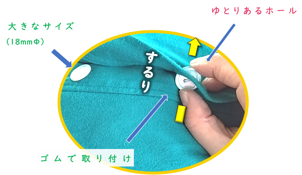 手を上にあげず着脱可能、ボタンも片手でかけはずしできる仕様です。