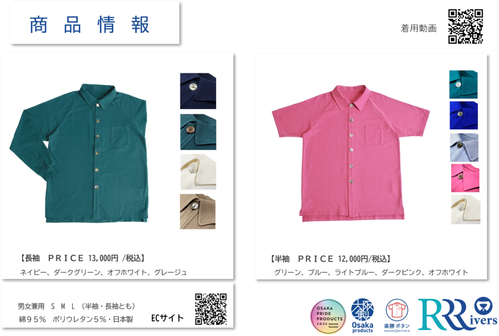 (ユニバーサルファッション協会推奨商品、IAUD国際デザイン賞2021銅賞受賞、大阪製ブランド2022、大阪地域代表商品)