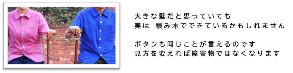 着脱が面倒なせいで外出意欲をなくしていた方、仕事に着るシャツ選びに困っていた方の着替えを楽にし「思い立った時の外出」にお供する「楽勝ボタン・前あきストレッチシャツ」です。