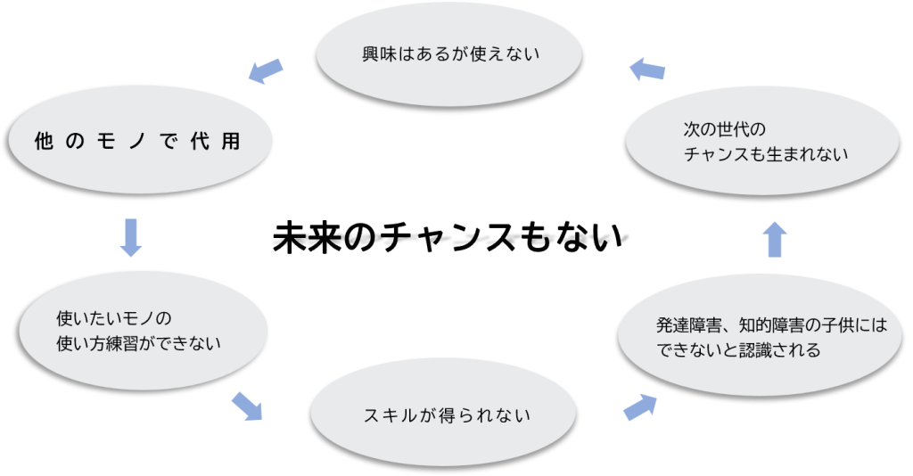 障害のある子には使えない。使えるモノの中から選ぶしかない。